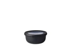 Mepal Cirqula multikom 350 ml in de kleur Nordic Black. Dit zwarte schaaltje met een inhoud van 350 ml is perfect voor het bewaren of meenemen van humus, sausjes of babyhapjes. De Cirqula serie van Mepal is speciaal ontwikkeld voor een complete circle of use’. Bewaar eten in de schalen in de koelkast of de vriezer, warm het op in de magnetron (deksel moet worden verwijderd) en serveer je maaltijd in de schaal (direct) op tafel. De Mepal Cirqula multikom is gemaakt van onbreekbaar materiaal. Het transparante venster in de deksel zorgt ervoor dat de inhoud goed zichtbaar is. De innovatieve, soepele deksel is 100% luchtdicht en lekvrij. Hierdoor blijft voedsel langer vers en kan het perfect bewaard en meegenomen worden. De Mepal Cirqula multikommen zijn praktisch en gemakkelijk op te bergen omdat je ze op elkaar en in elkaar weg kunt zetten.