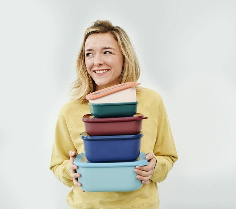 Dankzij de rechthoekige vorm van de multikom wordt de ruimte in je koelkast of vriezer optimaal benut. De multikom Cirqula mag zo vanuit de vriezer of koelkast je magnetron in (deksel moet worden verwijderd). Opgewarmd? Dan zet je de kom rechtstreeks op tafel.